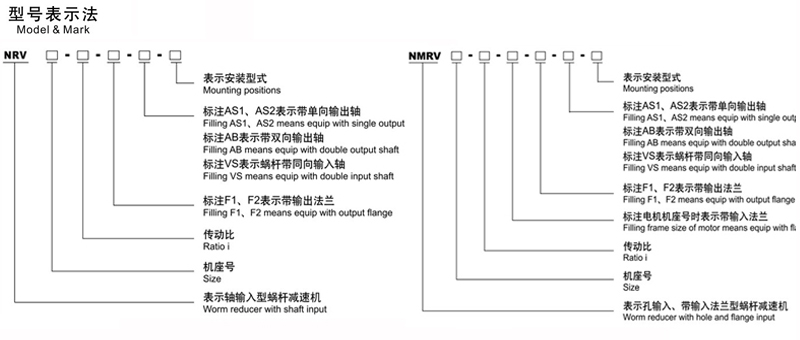 RV系列蝸輪蝸桿減速機分類形式有兩種: